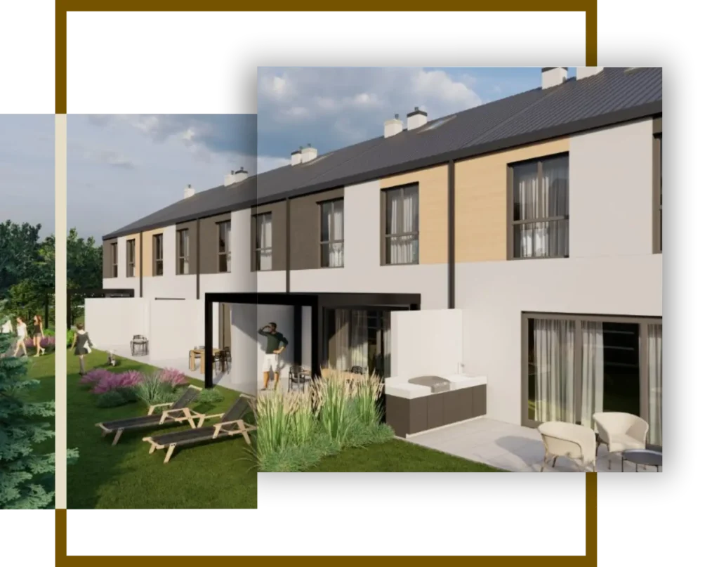 Budynki bÄdÄ oddane w kompletnym stanie deweloperskim. BÄdÄ zrobione tynki, wylewki, elewacje oraz droga wewnÄtrzna z chodnikami.