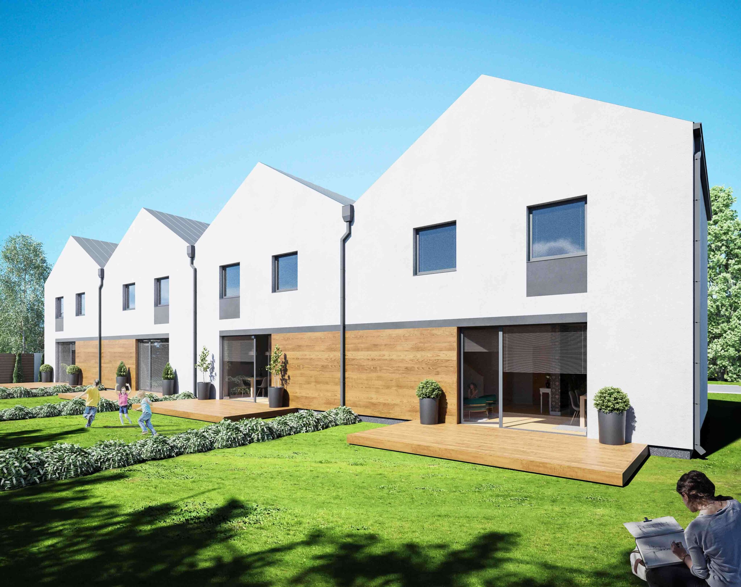 Sześć przestronnych, eleganckich domów w zabudowie bliźniaczej, z niepowtarzalnym widokiem na Park Suble, z dużymi, ogrodzonymi działkami. Każdy dom ma ponad 130m2 powierzchni.